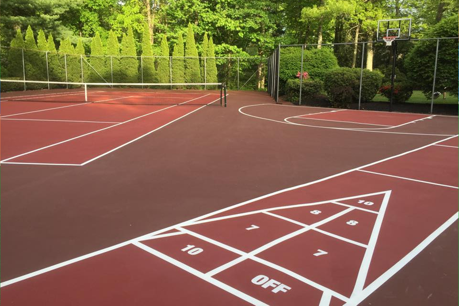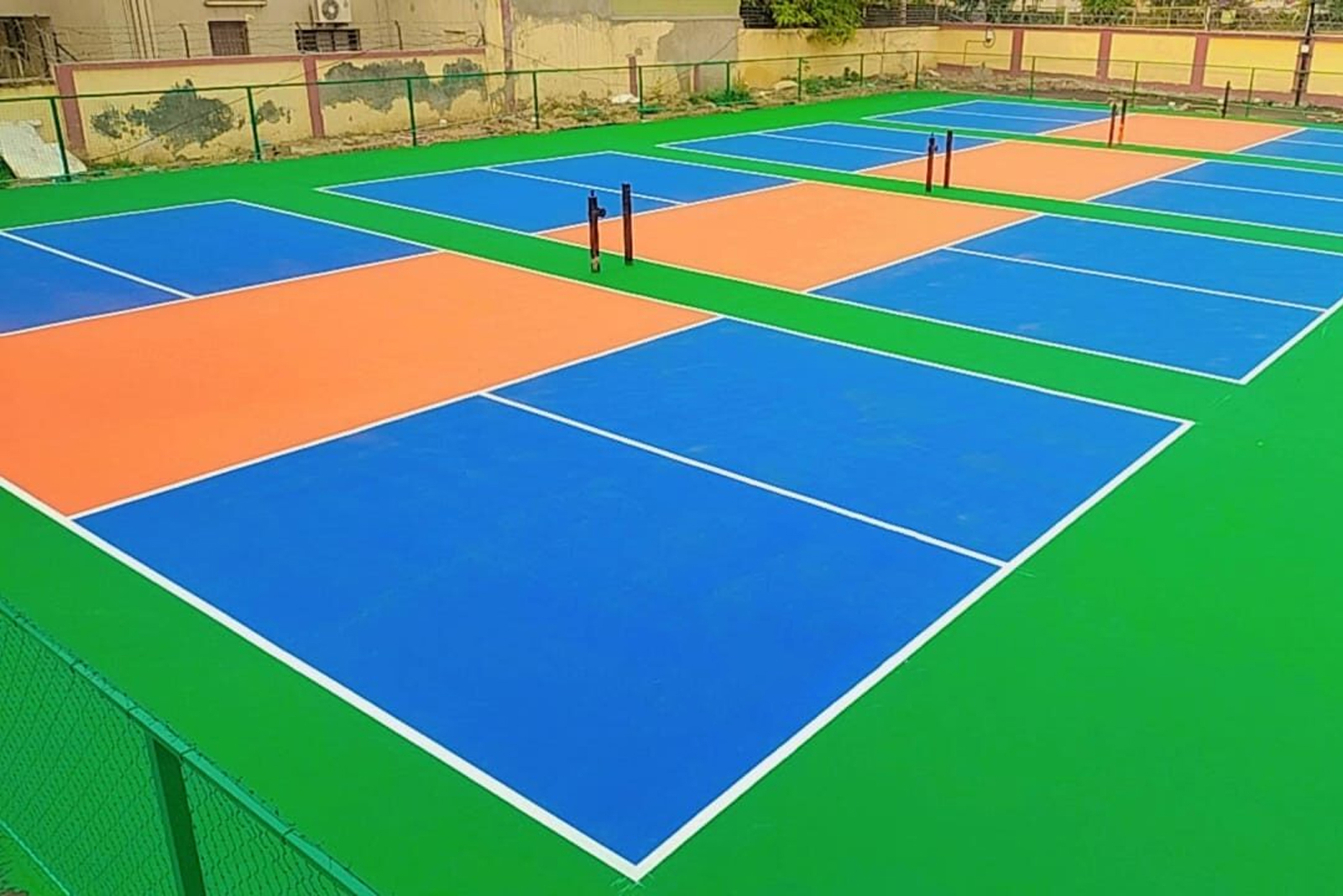 Engineered for versatility, acrylic flooring supports a wide range of sports including tennis, basketball, volleyball, pickleball, and futsal. Its seamless, non-porous surface ensures consistent ball bounce, predictable grip, and player comfort, while its UV- and weather-resistant properties make it ideal for outdoor as well as indoor facilities.